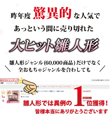 雛人形の累計出荷本数もついに150000本を超え今季も大ヒット販売中です! ※在庫状況やサイズによって前飾りや持ち物のデザインは予告なしに変更となる場合がございます。